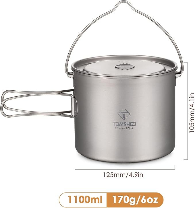 Camping Pot, Titanium Pot 750ml/900ml/1100ml/1600ml/2000ml/2800ml Ultralight ing Pot with Lid and Foldable Handle Outdoor Camping Backpacking Cooking Picnic