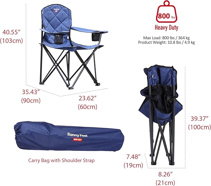 SUNNYFEEL XXL Oversized Camping Chair Heavy Duty 500 LBS for Big Tall People Above 6'4 Padded Portable Folding Sports Lawn Chairs with Armrest Cup Holder & Pocket for Outdoor/Travel/Picnic/Camp