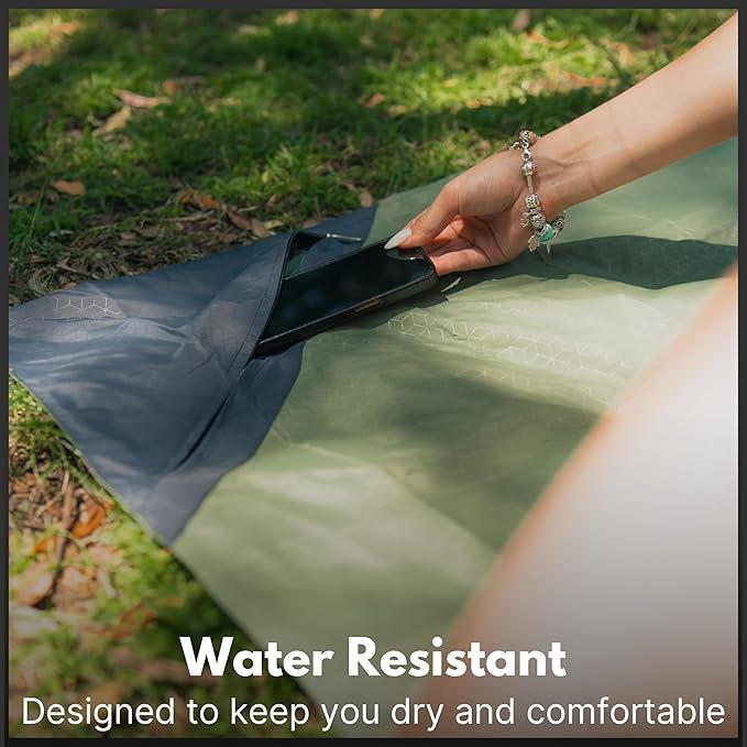 ECCOSOPHY Sand Proof Beach Blanket - Waterproof Picnic Blanket 60x55-Outdoor Compact Pocket Blanket-Lightweight Ground Cover for Hiking, Camping, Festivals, Sports, Travel-with Bag & Stakes (Olive)