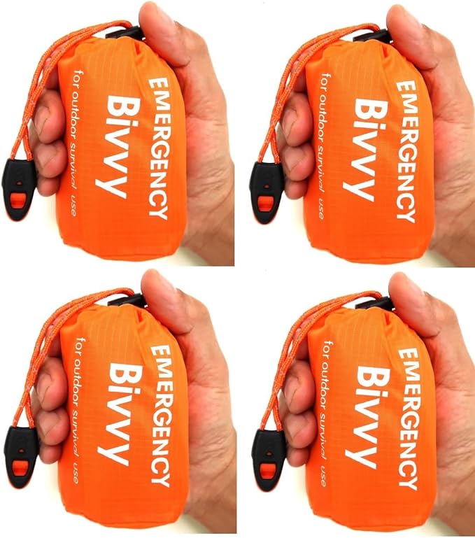 4 Packs Emergency Thermal Sleeping Bag, Survival Bivvy Sacks Blanket with Whistle, Waterproof Lightweight Survival Shelter Blanket Bag Gear for Outdoor Hiking Camping Adventure..