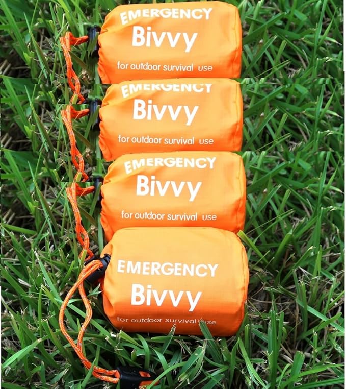 • ✅ MULTIPURPOSE SURVIVAL BIVVY THERMAL SLEEPING BAG: Perfect for waterproof, moisture-proof, UV-proof with high low temperature resistance protection. It is very suitable as a outdoor gear for both men and women for such activities as hiking, camping, backpacking and mountaineering. These mylar thermal blankets can be used as ground covering, sleeping bag liner, emergency poncho, tent car sleeping bag blanket camping tarp survival against wind rain cold heat dirt dust...