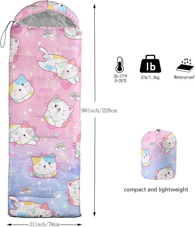 • 【Fits For 3 Seasons】: Size - 31 by 90 inches (W x D). Our sleeping bag can be used in 3 seasons with a design temperature of 32℉-77℉(0℃-28℃). These bags also have a weather resistant waterproof design to keep you warm and prevent you from any dampness.