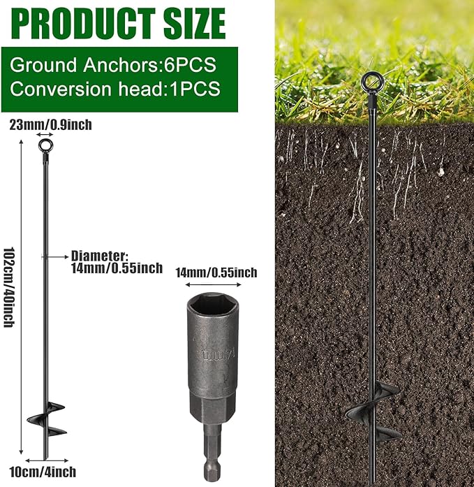 • Package Includes: you will receive 6 pieces of ground anchors and 1 piece of power nut driver drill bit, you can use this ground augers kit for binding many things vulnerable to wind, or share the trampoline anchor kit with your family members and neighbors; When they receive these practical tools, they will feel satisfied