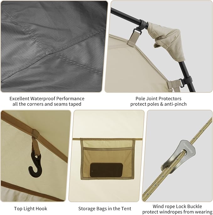• Easy Setup Instant Tent: With pre-attached poles and an automatic structure, this camping tent is super easy to assemble in 60 seconds, saves time, and is friendly for people with no camping experience.