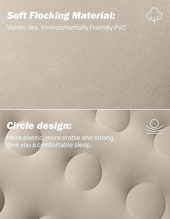 • 【Thicker Fabric】: Our thickened air cushion enhances stability and comfort, easily supporting the weight of two adults. The surface and pillows are crafted from soft, velvet-like flocking fabric, providing a luxurious, cushy feel for a restful experience.
