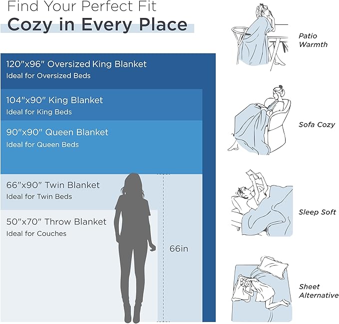 • Giftable: Available in multiple sizes and colors, this king size blanket comes in a festive gift-ready package, making this ultra-soft blanket a great gift option to usher in all seasons.
