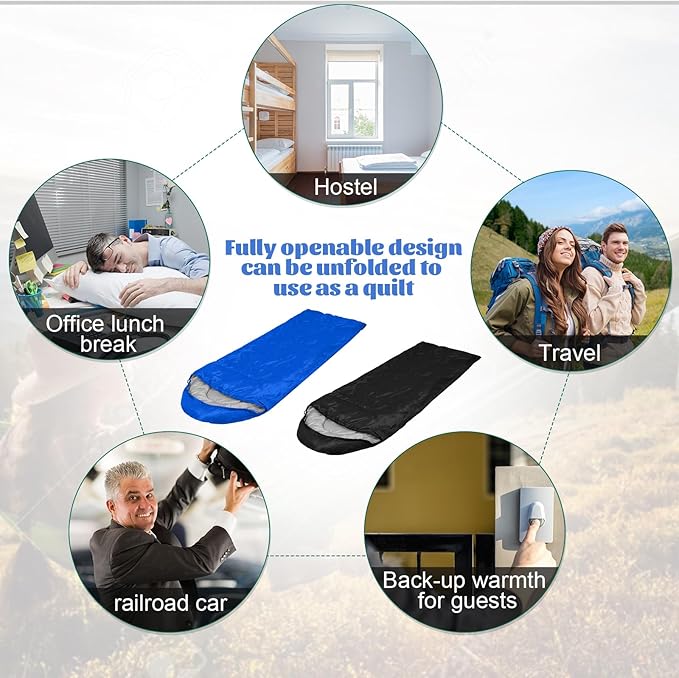 • Suitable for 4 Seasons and Warm or Cold Weather: our adult sleeping bags can keep warm in various outdoor activities in spring, summer, autumn, and winter; They are weather resistant design to keep you warm even in extreme conditions and prevent you from any dampness, you can get the comfortable sleep you need after a day of adventurous outdoor camping, backpacking, hiking, or travel