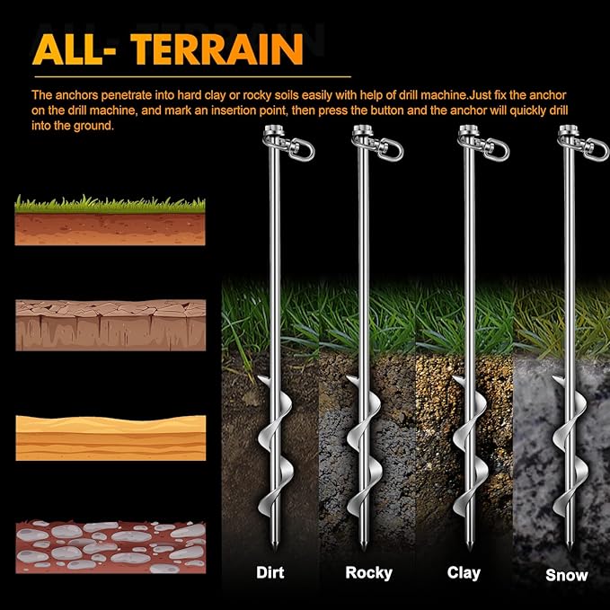 • Install Easily: the earth anchors are easy and convenient for you to install, with the help of the T handle hex wrench, the pointed ends can easily penetrate into the soil, greatly improving the efficiency, saving your time and energy