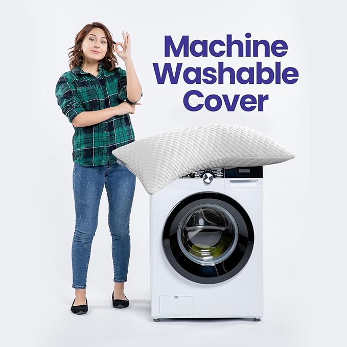 • EFFORTLESS UPKEEP: The soft plush pillow cases are removable, machine-washable, and dries quickly. Start each day with a fresh, clean pillow without the fuss of complex cleaning routines. Queen Size pillows are 19” x 29”