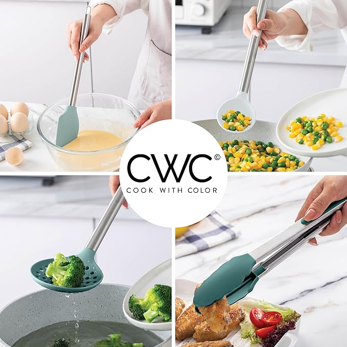 COOK WITH COLOR Silicone Cooking Utensils, Kitchen Utensil Set, Easy to Clean Silicone Kitchen Utensils, Cooking Utensils for Nonstick Cookware, Kitchen Gadgets Set, 10 Pieces, Teal