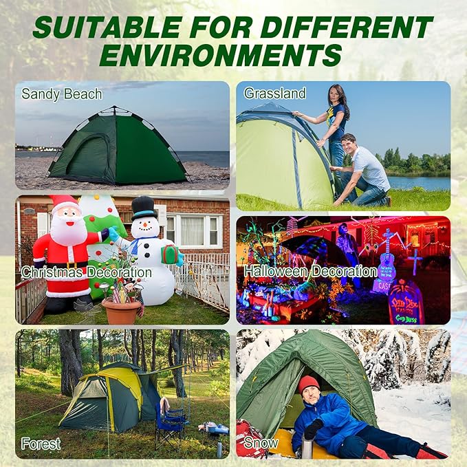 • Wide Range of Applications: the inflatable decoration stakes can be applied to fix ordinary outdoor travel tents, but also can be applied to your tent, canopy, canopies, tarps, picnic mats or even to secure your dog leash, they are quite useful camping travel tools, convenient and portable;and these stakes for inflatables can be applied in various occasions, such as garden lights, Thanksgiving, Halloween pumpkin lights and streetlights, Christmas santa claus and snowman