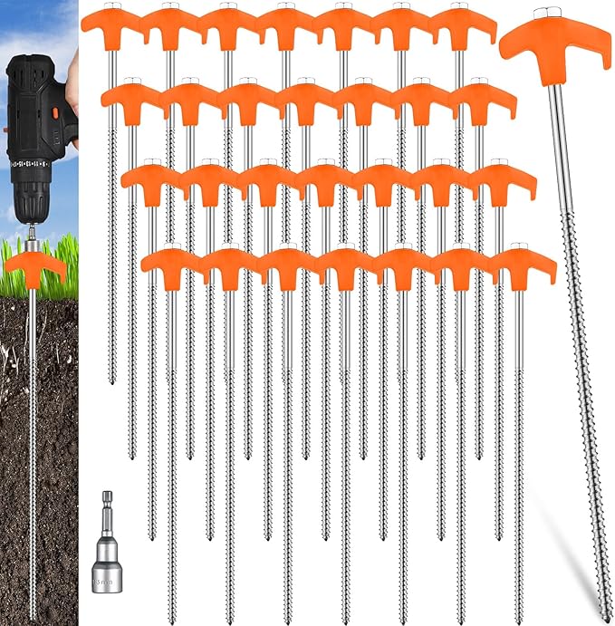 • Convenient and Practical: our tent stakes for have pointed tips that are easy to insert into hard soil, and the spiral design offers a stronger grip; With the help of a cordless drill or impact driver, these stakes will have your tents, canopy, awning or tarps grasp the ground more stable