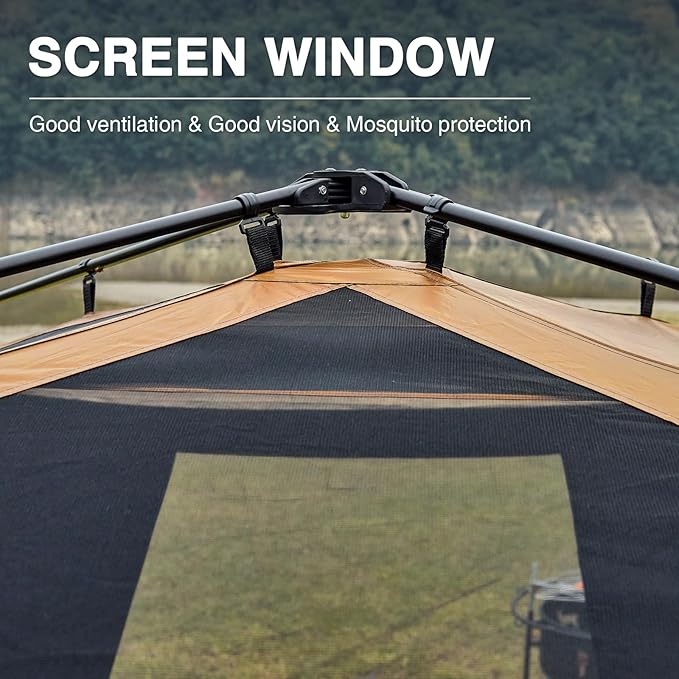 • GREAT VENTILATION: 3 large zippered mesh roll up windows and overhead net window for plenty of air flow and heat dissipation for the instant cabin tent; The skylight offers adequate vision for the camping tent while rainfly provides protection against the rain