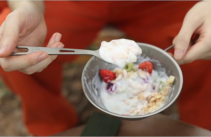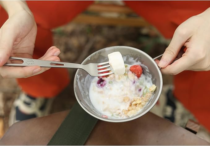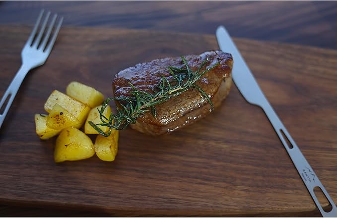 • Light Weight: The material titanium (Ti) is almost half weight of stainless steel. The cutlery is made of 99.8% titanium and weights less than 1.4oz(40g).