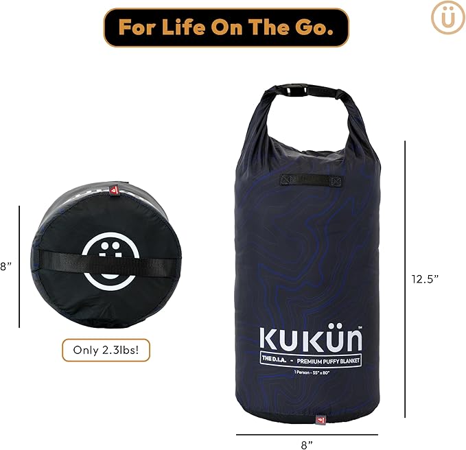 • Environmentally Aware - Kukün's outdoor puffy blanket features PrimaLoft Insulation, made from 100% recycled high quality materials. Better your camping gear with our durable and packable blanket. Thanks for supporting sustainable living.