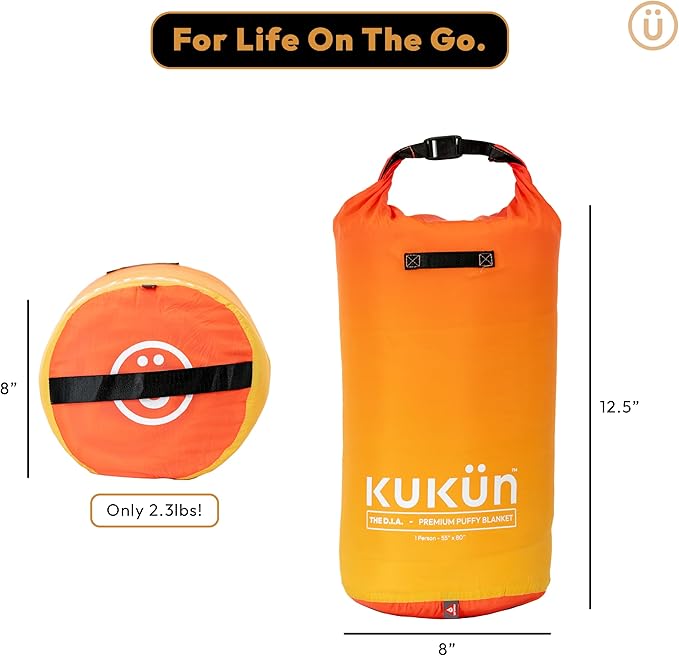 • Ultimate Comfort - Our Premium Puffy Blanket with 200gsm Primaloft Insulation ensures you stay protected, warm and comfortable , for all adventures. The Kukün blanket is oversized so it will be comfortable for everyone short or tall.