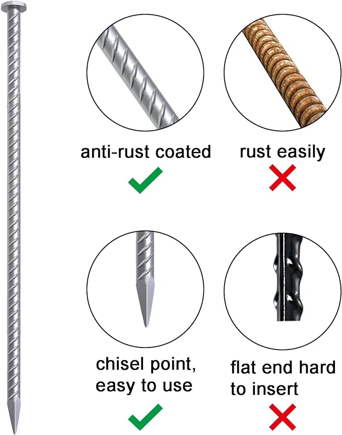 • Galvanized & Sturdy Steel - Landscape timber spikes are made of threaded steel with a galvanized surface coating installation, firmly in various hard surfaces. Long-lasting design is weather-resistant and rustproof