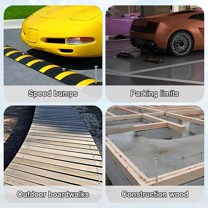 • Wide Range of Uses - Asphalt anchors are suitable mounting hardware for permanent installation in ground. Versatile use to anchoring speed bumps, parking curbs, wheel stops, cord covers, handicap threshold ramp, tarp