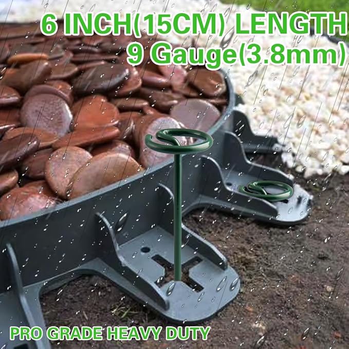 • Easy to Install - These sturdy steel landscape stakes have a pointed tip for faster, deeper insertion into the soil(except concrete and rock). For smaller projects, you don't need to hire a professional to install them, and just gently tap the landscape staples with a rubber mallet or wooden hammer and easily insert them into the soil in just 30 seconds.