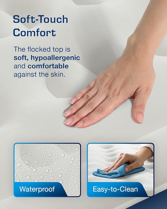 • DURABLE & WATERPROOF: Crafted with an extra-thick, hard-wearing, and waterproof flocked top layer, our double air bed provides a luxurious sleeping experience. The 5-gauge puncture-resistant material ensures durability and longevity, and the edge guard construction enhances air mattress stability and provides more sleeping space.