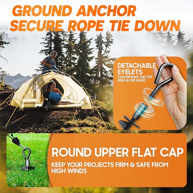 • [Upgrade Version With Thick Spiral Blade Design] Compared to traditional manual anchors, these ground anchors are improved the full spiral blade design and their thickness to 2.16mm, creating spaces between the spirals to the rock layer that can creep into and keep anchors more firmly. Effectively prevent the tent from being blown away by the wind. Perfect for a variety of life scenes, outdoor activities, and other outdoor furniture.