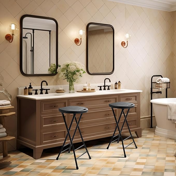 24-Inch Folding Stool with Handle, Folding Bar Stool with Non-Slip Feet,Folding Chair,Indoor and Outdoor Foldable Stool for Adults,500 lbs Capacity,Kitchen,Game Room(13"×11.5"×24")