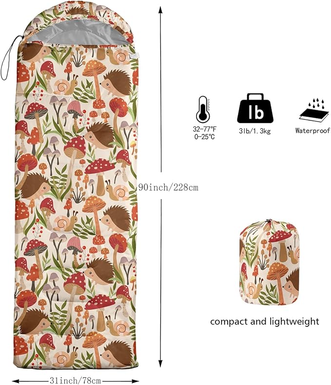 • 🌟 Unparalleled Comfort - Indulge in the epitome of comfort with our Mushroom2 sleeping bag. Meticulously crafted from premium microfiber fabric, it envelopes you in a cocoon of luxurious softness, ensuring an unparalleled sleep experience. The advanced 100% polyester surface material guarantees exceptional durability and long-lasting performance.