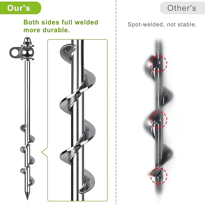 • Stable and reliable: Spiral anchor pieces easily pierce hard or rocky soil, providing a firm grip for secure tent installation