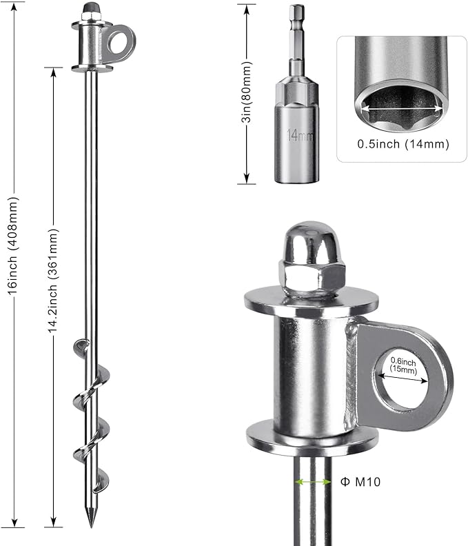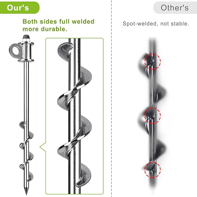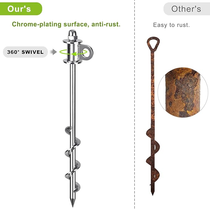• 【Easy to Install and Remove】You can easily screw these spiral anchor into the ground with a drill and screw them out again when you don’t need them. You can install them in a few minutes, saving your time and effort