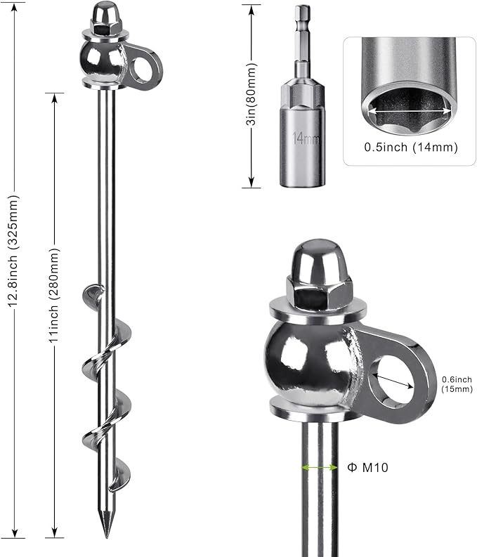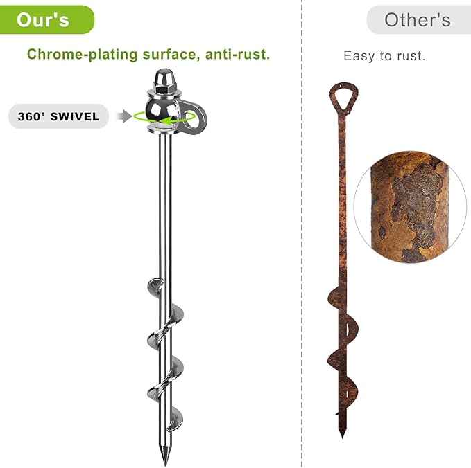 • 【Easy to Install and Remove】You can easily screw these spiral anchor into the ground with a drill and screw them out again when you don’t need them. You can install them in a few minutes, saving your time and effort