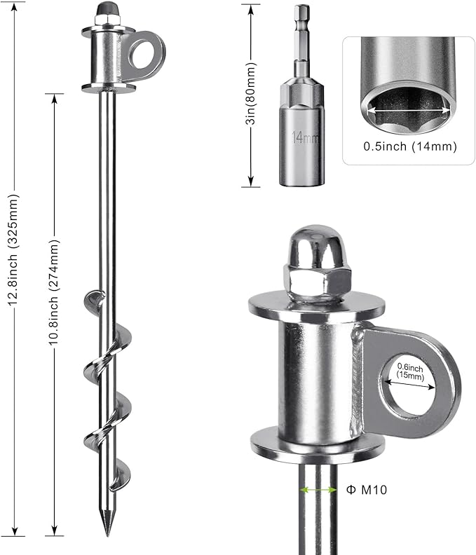 • Easy installation and removal: Screw these spiral anchors into the ground with a drill and unscrew them when not needed; quick installation saves time and effort