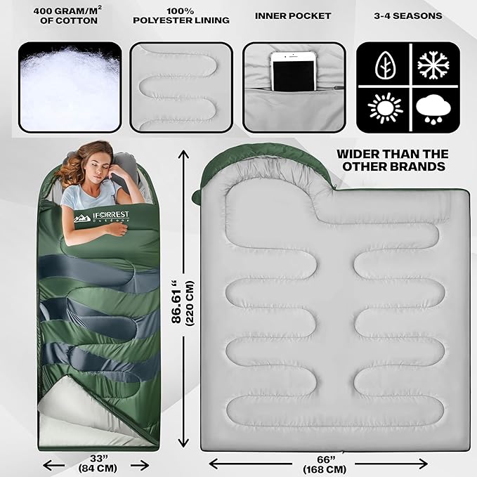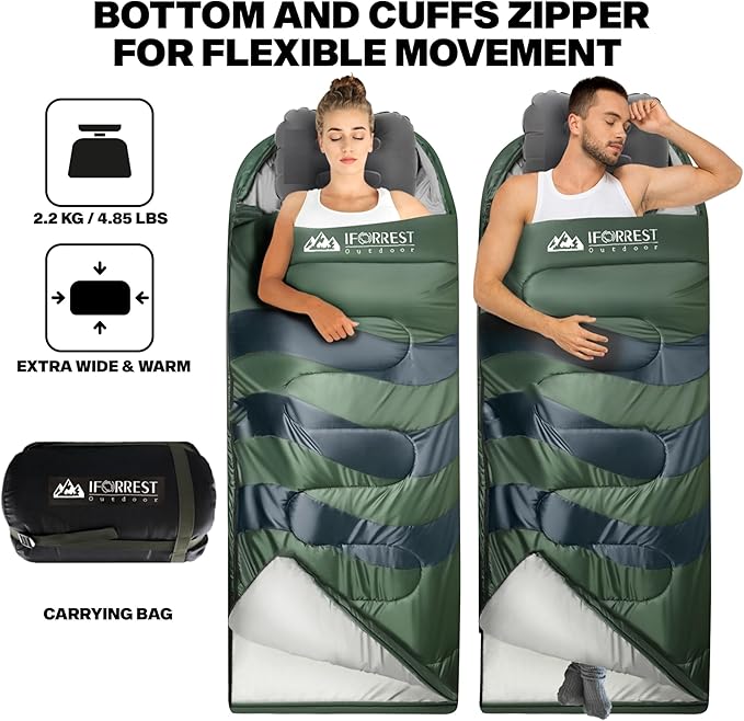 IFORREST Sleeping Bag - Single-Person Cold Weather Camping Sleep Bag for Adults and Teens - XXL 33in/ 40" - Extra-Wide & Warm for Big & Tall - All-Season Comfort