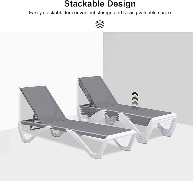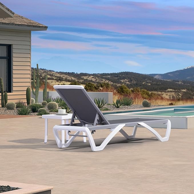 PURPLE LEAF Patio Chaise Lounge Chair Set Outside Aluminum Plastic Stackable Tanning Chairs with Side Table for Pool Sunbathing Beach Deck Outdoor Lounger, Grey
