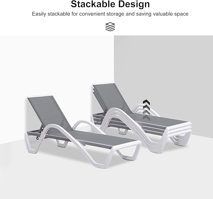 PURPLE LEAF Patio Chaise Lounge Chair Set Outside Aluminum Plastic Stackable Tanning Chairs with Armrests and Side Table for Pool Sunbathing Beach Deck Outdoor Lounger, Light Gray