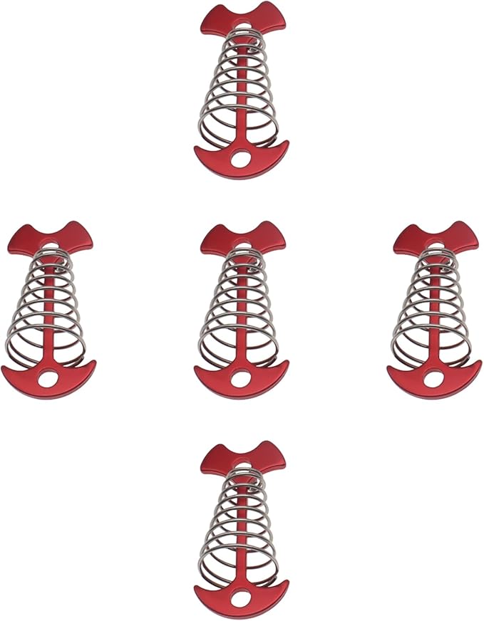 GWAYN 5 Pack Deck Anchor Pegs 3.0 Inch Aluminium Alloy Fishbone Tent Stakes with Spring Buckle Portable Wind Rope Anchor Camping Tent Nail