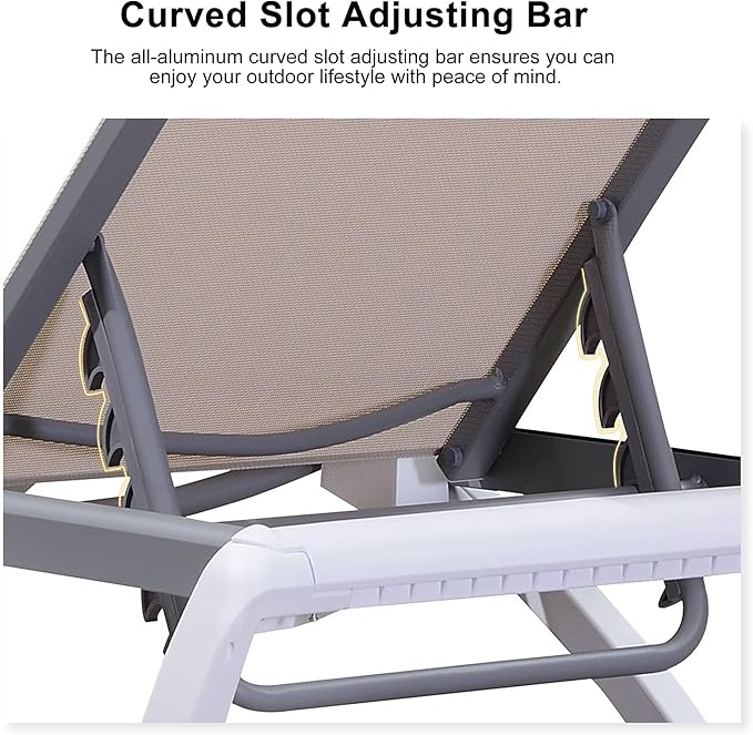 PURPLE LEAF Patio Chaise Lounge Chair Outside Aluminum Plastic Stackable Tanning Chairs for Pool Sunbathing Beach Deck Outdoor Lounger, Khaki