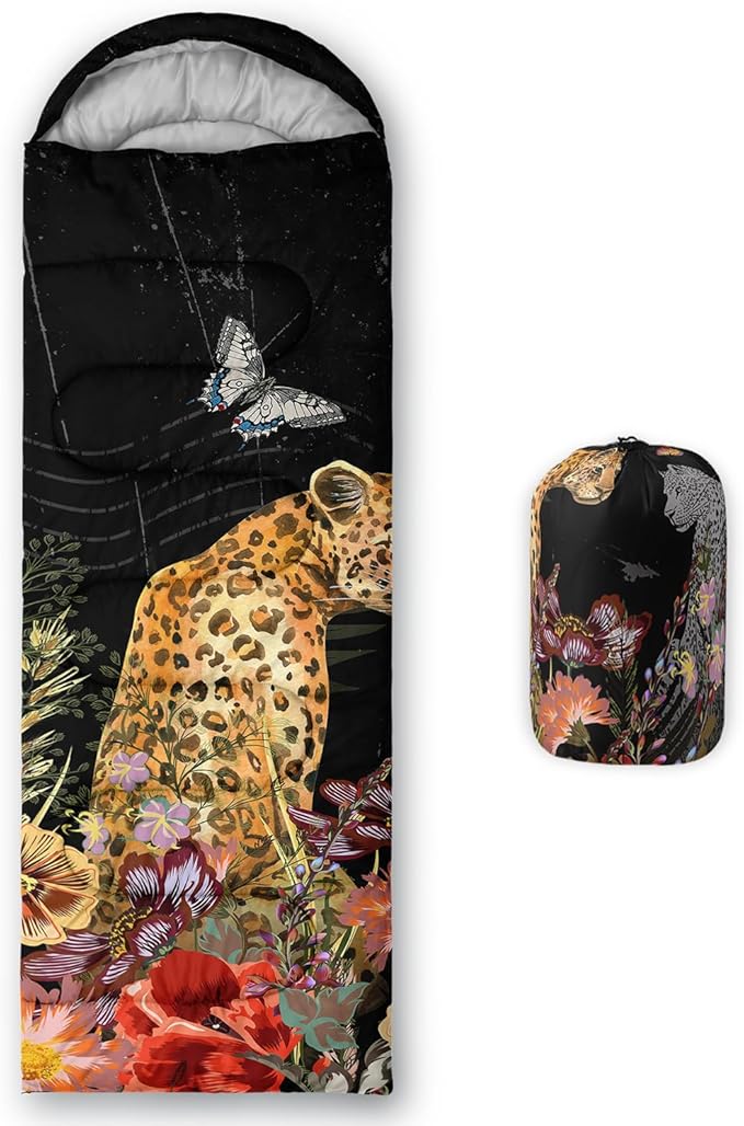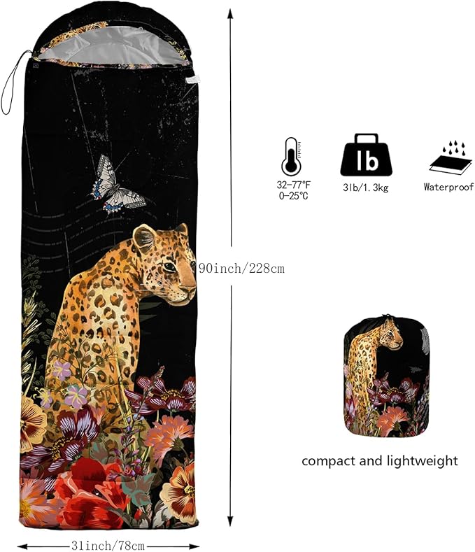 • 🌟 Unparalleled Comfort - Indulge in the epitome of comfort with our Leopard sleeping bag. Meticulously crafted from premium microfiber fabric, it envelopes you in a cloud of luxurious softness, ensuring an unparalleled sleep experience. The advanced 100% polyester surface material guarantees exceptional durability and long-lasting performance.