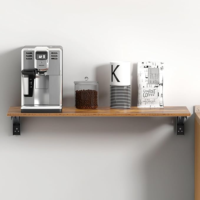 • ★SPACE SAVING:14 gauge cold rolled steel collapsible shelf brackets can fold the the desktop well.When not in use,it helps you keep your room and house organized and tidy.
