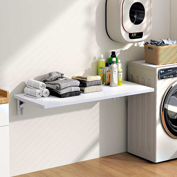 Need Fold Wall Mounted Table Folding Workbench Length 47.2" Width 20" Perfect Addition to Garage & Shed/Home Office/Laundry Room/Home Bar/Kitchen & Dining Room White AC15-12050WW-ND