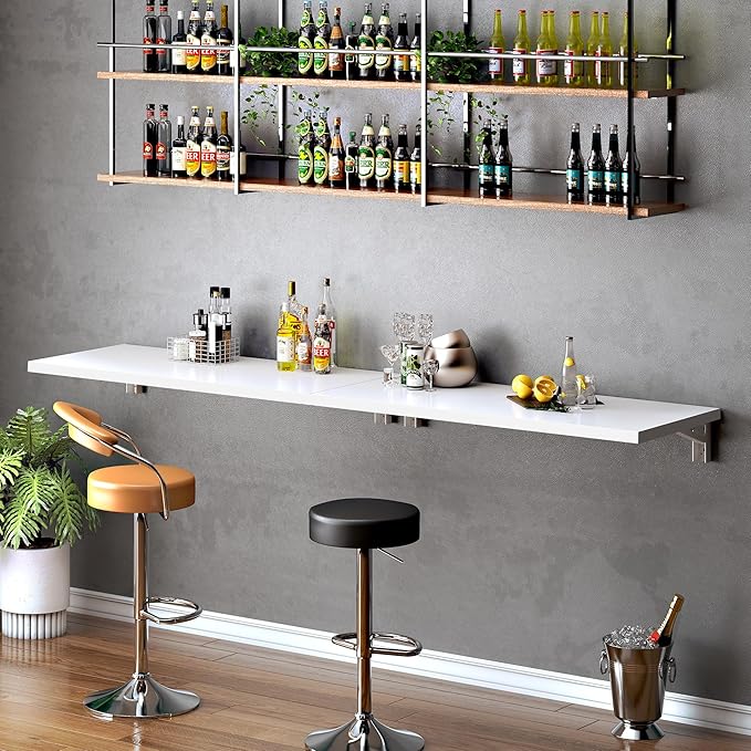 • ★STURDY & SIMPLE - This floating desk folding brackets are built with high-strength 14 gauge cold rolled steel that is powder coated for a perfect finish. And the wall table top surface is 1 inch thick, high resistance on scratch & friction.According to the instructions, step by step installation is correct, no matter whether the reinforced concrete wall or drywall are very sturdy.