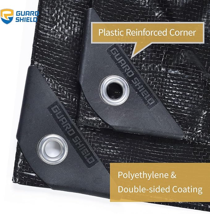 GUARD SHIELD Black Tarp 12x12 Feet Waterproof Tarps Lightweight Camping Tarp Outdoor Multi Purpose Poly Cover 6mil