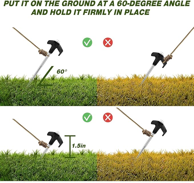 • Easy to Use: our inflatable decoration stakes have pointed tips that are easy to insert into hard soil, and the spiral design offers a stronger grip; With the help of a cordless drill or impact driver, these easy-to-use stakes will have your inflatables, tents, canopy, gazebo, awning, guy lines or tarps grasp the ground in a second