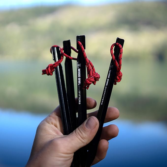 • All-in-One Setup: Includes six 10-foot guy lines, aluminum tent stakes, a stake pouch, and a waterproof carry bag for efficient setup. Whether anchoring a tarp shelter or hammock rainfly, installation is quick and reliable for any outdoor terrain.