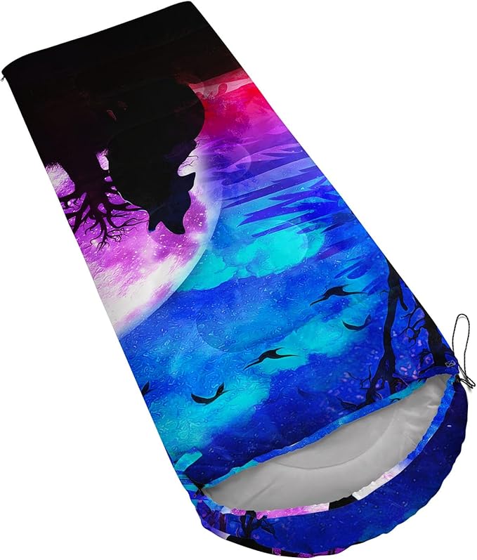 Galaxy Wolf Camping Sleeping Bags Warm & Cool Weather Waterproof Backpacking Blue Purple Starry Sky Sleeping Bag All Seasons Camping, for Adult Kids Boy Girls Camping Gear Equipment, Traveling