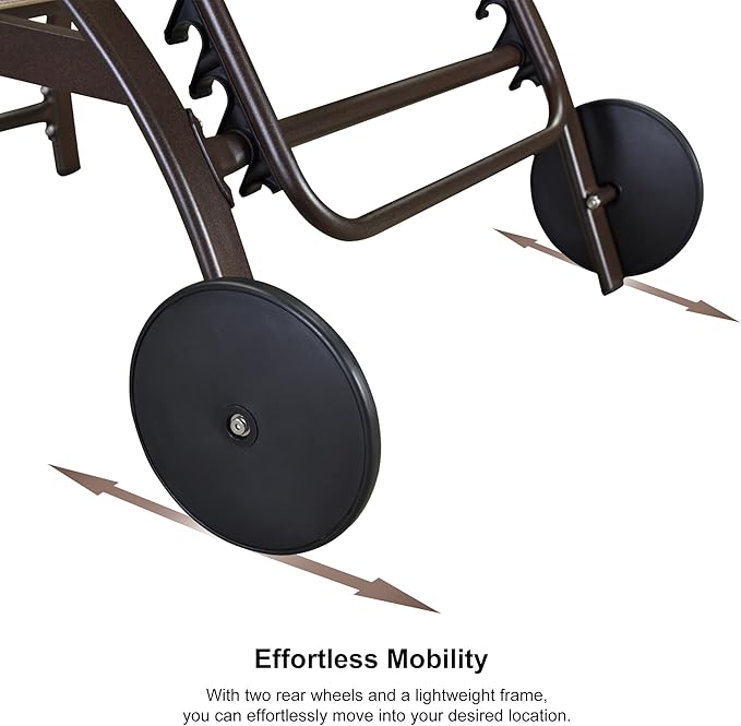 • Easy Movement: With two wheels attached to the back legs, loungers can be easily moved to your preferred location.
