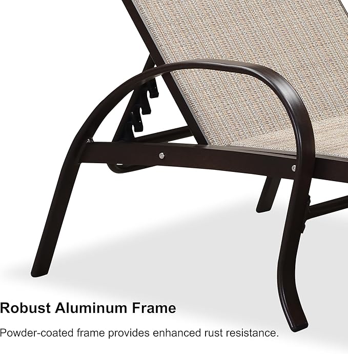 PURPLE LEAF Outdoor Chaise Lounge Chair Set of 3 Patio Pool Lounger Aluminum Chairs with Side Table Adjustable Tanning Recliner for Outside Yard Deck Lawn Garden Beach Khaki