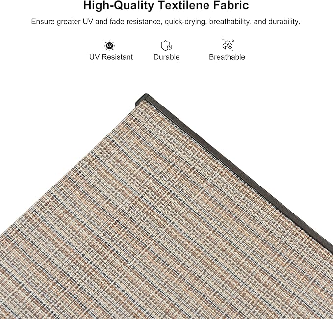 • High-quality Textilene Fabric: Advanced Textilene fabric ensures greater UV and fade resistance, quick drying, breathability, and durability with minimal upkeep.