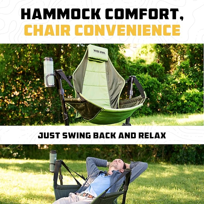 Wise Owl Outfitters Hammock Chair for Adults – Comfortable Portable Folding Rocking Camping Chair with Carry Bag – Great for Lawn, Campsite & Outdoors