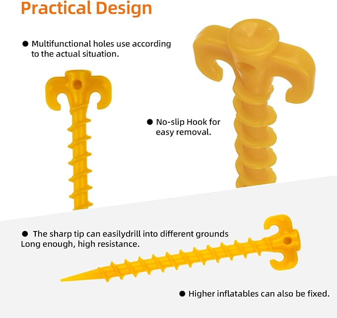 • SUITABLE FOR MULTIPLE SCENARIOS: In addition to being used to secure tents, canopies, tarps, rope racks, fences, awnings, and beach umbrellas, the nails can also be used to secure your child’s trampoline, support fixed plants, and secure Christmas giant balloon