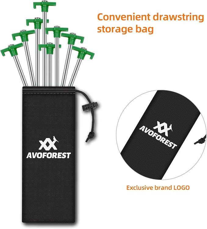 12+2PCS Tent Stakes Heavy Duty Camping Stakes,AVOFOREST 9.8inch Non-Rust Metal Tent Pegs Ground Stakes Tent Spikes Camping,Garden,Hiking Green